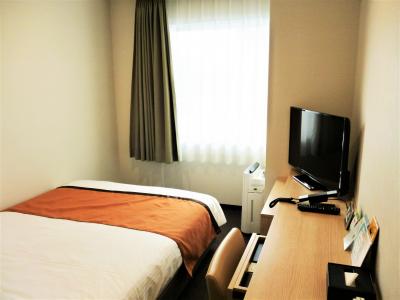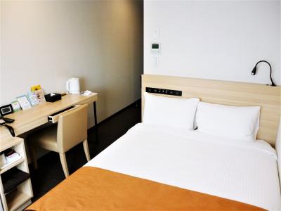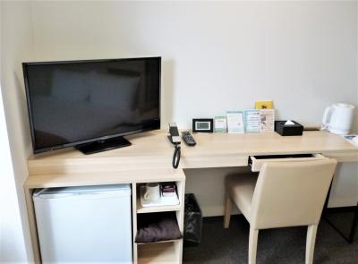 客室は一般的なビジネスホテルの広さのレイアウトに各備品が置かれています。その質感もデザインもシンプルで温かみのあるすっきりとした雰囲気は好いですね。