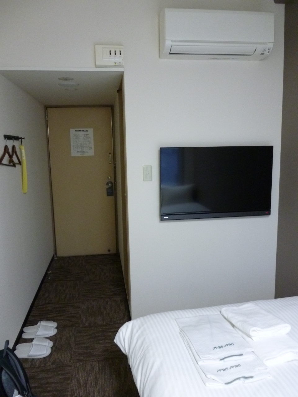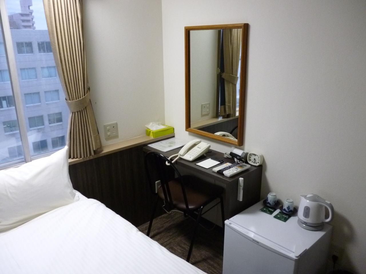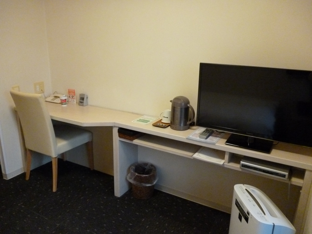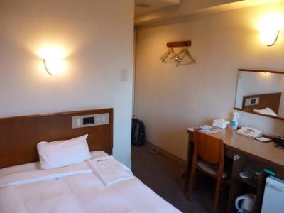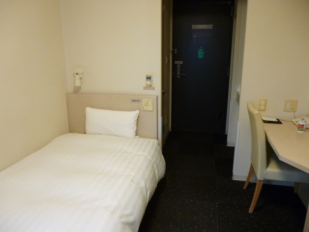 客室は通常利用しているドミーインとは違った雰囲気で、ベッドがシングルベッド(通常はセミダブル)に長く細いデスクは使い勝手が悪く仕事などには不向きです。