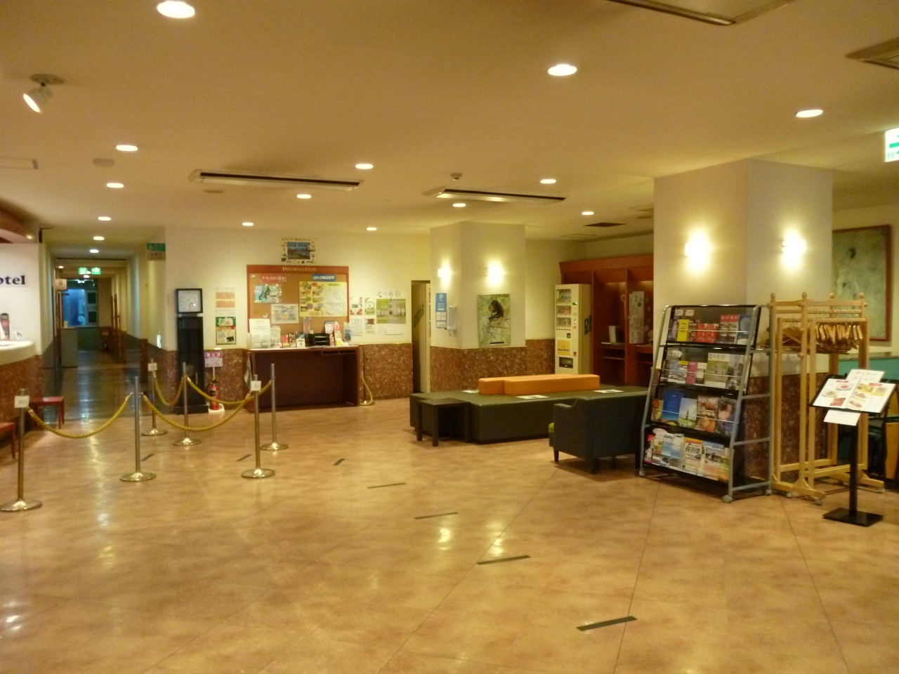 全体的にコンパクトなイメージで1階フロントもロビーのようなものは無く椅子が数個あるだけで他には何もありません(フリーPCなども無し)。