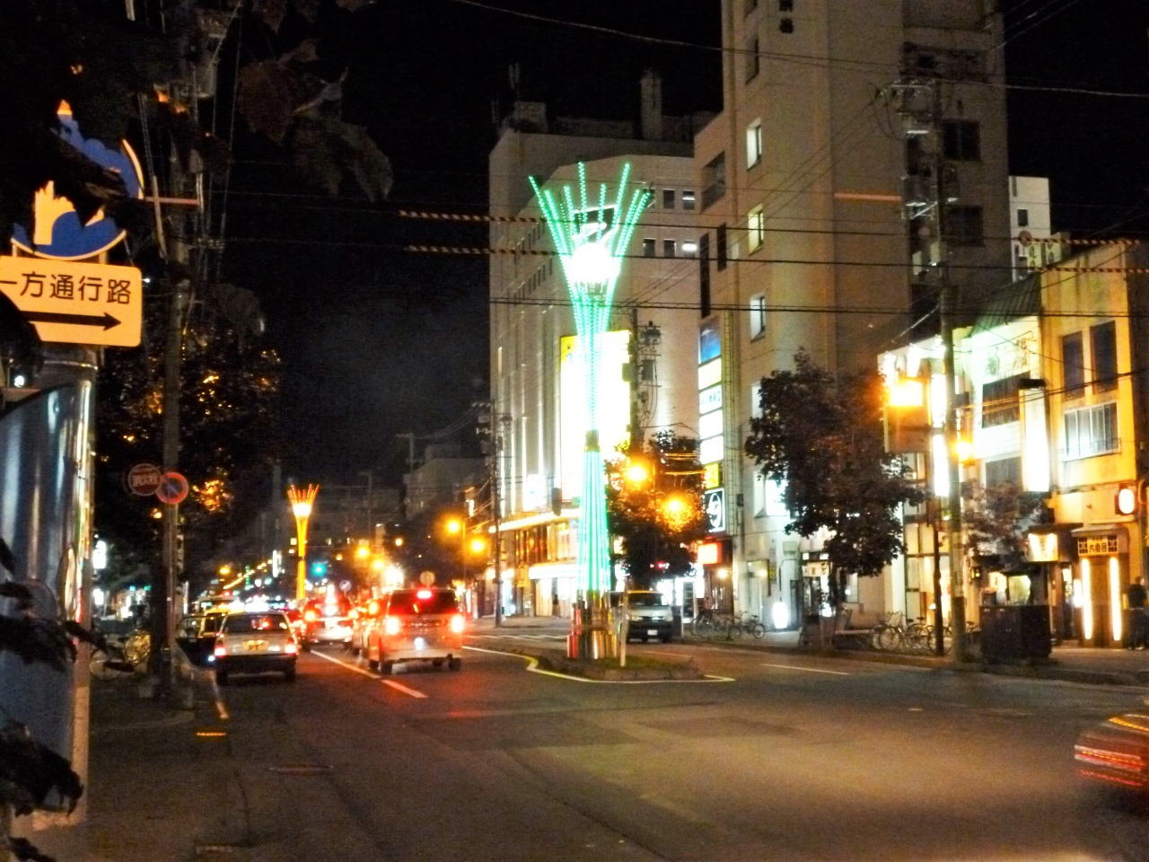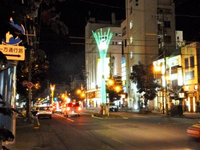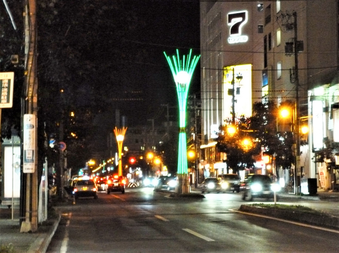 その3・6街の中心を南北に貫くのが昭和通で、中央分離帯にはツインピラーという2本のイルミネーションタワーが建ってます。