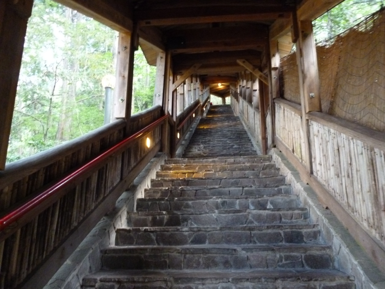 自慢の温泉も大浴場には内風呂のみで湯舟が一つ有るだけ…、サウナなどの施設は有りません。売りの森林露天風呂は更に100段近い階段を上がったところに在るのでご高齢の方などには不向きです。確かに杉木立の中で湯に浸かれる至福感はありますが?…。
