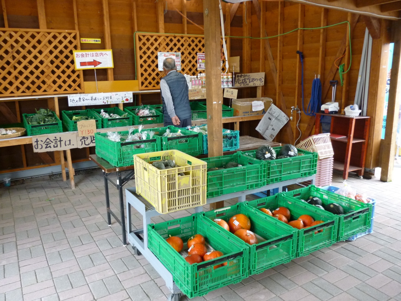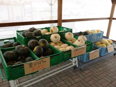 また、野菜直売所を別に設けて新鮮野菜を販売~、時期的にはジャガイモ・玉葱などが有名ですが、特に大きなかぼちゃがごろごろとしかも安い値段で販売されてました。