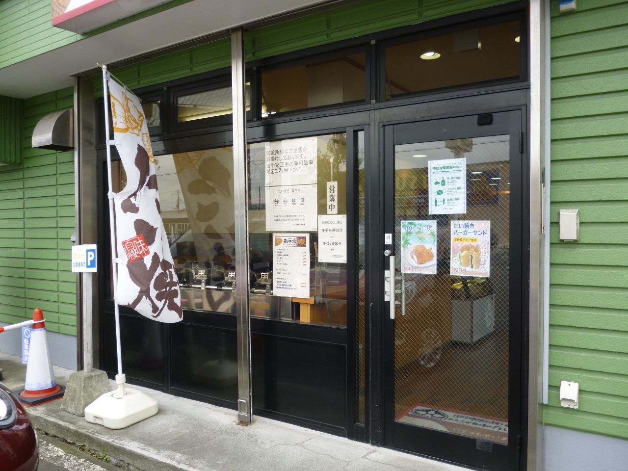 場所は至って判り易く、道の駅サーモンパーク千歳から近く千歳川に架かるサーモン橋を渡って右側直ぐ~、店頭に”たい焼き”の幟が出ているので判り易いです。