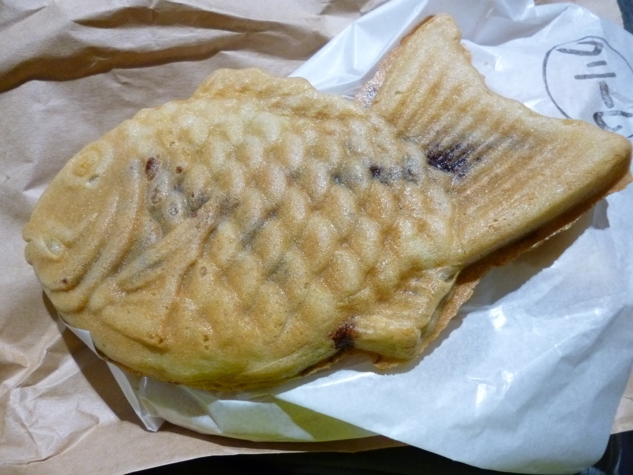その自慢のたい焼きは、小倉餡・こし餡・クリーム・チョコなどどれも美味しそうですがやはり王道は小倉餡(粒餡)¥130とクリーム¥140を1個づつ購入しました。