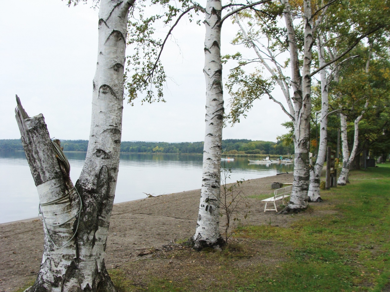 湖畔沿いには柏や白樺にナナカマドといった道内を代表する多くの木々が植樹され、手入れされた芝生もふかふか状態でした。