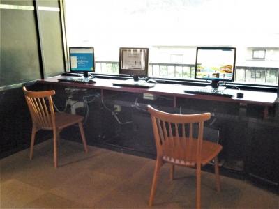 ロビーはコンパクトながらも休憩出来るスペースと、無料の漫画本やPCに観光用リーフレット類が備えて有ります。