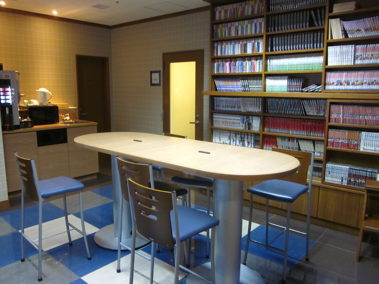 部屋のマグカップを持って、1階の珈琲マシンで珈琲や紅茶を頂いて、一人用のソファーでちょっと好い本を読めるのもここの魅力です。