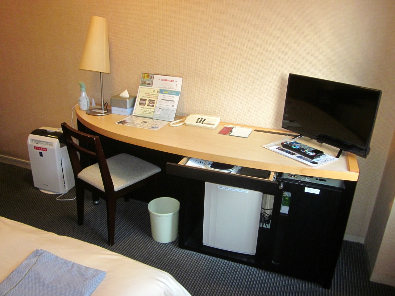 部屋はそれなりにコンパクトで壁紙や窓にベッドなどの雰囲気は以前のまま…、特に目新しいものは有りませんでしたが、加湿空気清浄機や電気ポットに冷蔵庫などは備え付けてあるので不便さは感じませんでした。