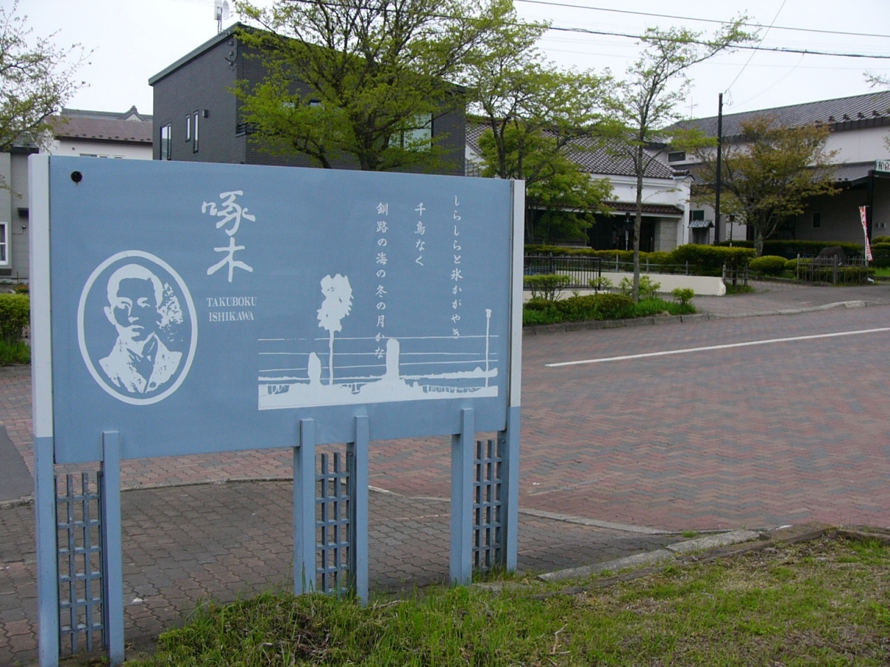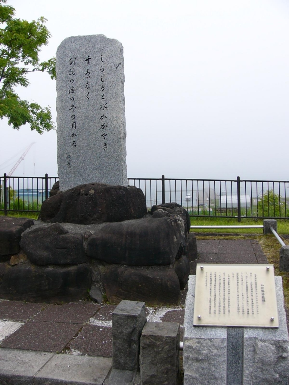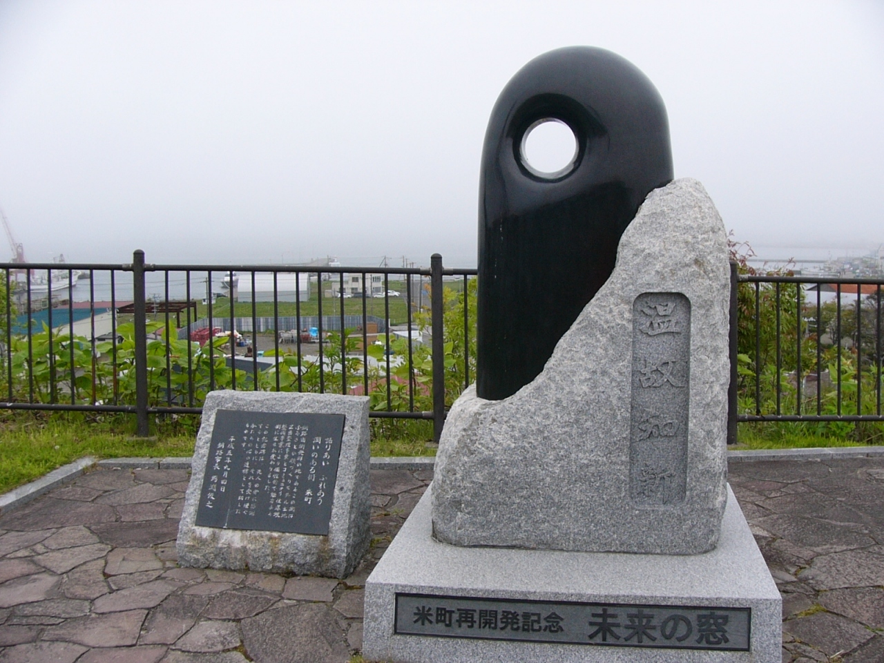 釧路フッシャーマンズワーフEGGの釧路川・河畔プロムナードと幣舞橋の袂に小さな花壇の中に「魚河岸発祥の地碑」が建っています。