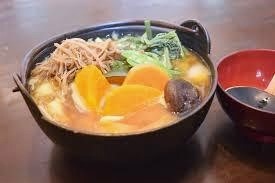 大きな鉄鍋にボリューム満点の野菜と豚肉、デカイかぼちゃが2個居座って、もちもち感の麺と根菜類、意外とあさっり風の味噌出汁と関西人には抵抗無く食べれる味。しかし、
