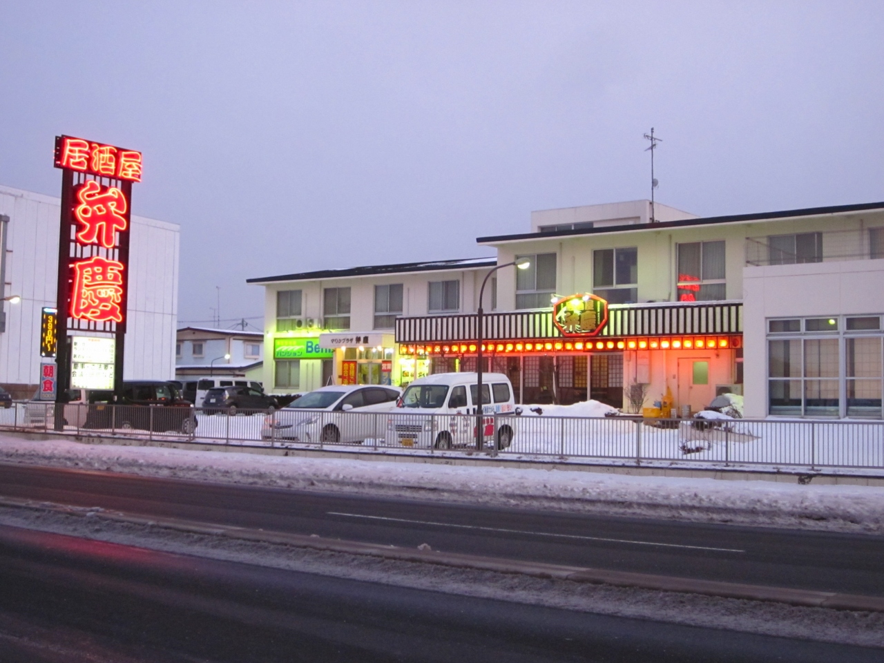 駅から港の方へ徒歩で10分ぐらいの幹線道路沿いに在るビジネス旅館「パンション弁慶」で、”居酒屋弁慶”の大きな看板が立っているので夜でも判り易いです。