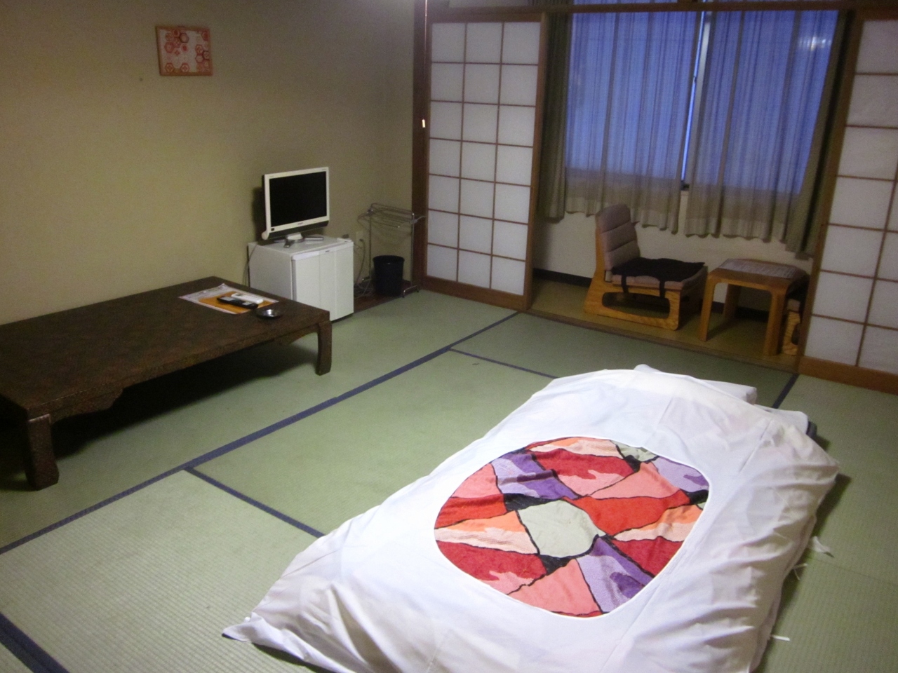 布団は予め敷いてありました~、が敷布団が厚手のスポンジのみ、ゆえに体が沈んで朝起きたら身体中が痛くて参りました…。