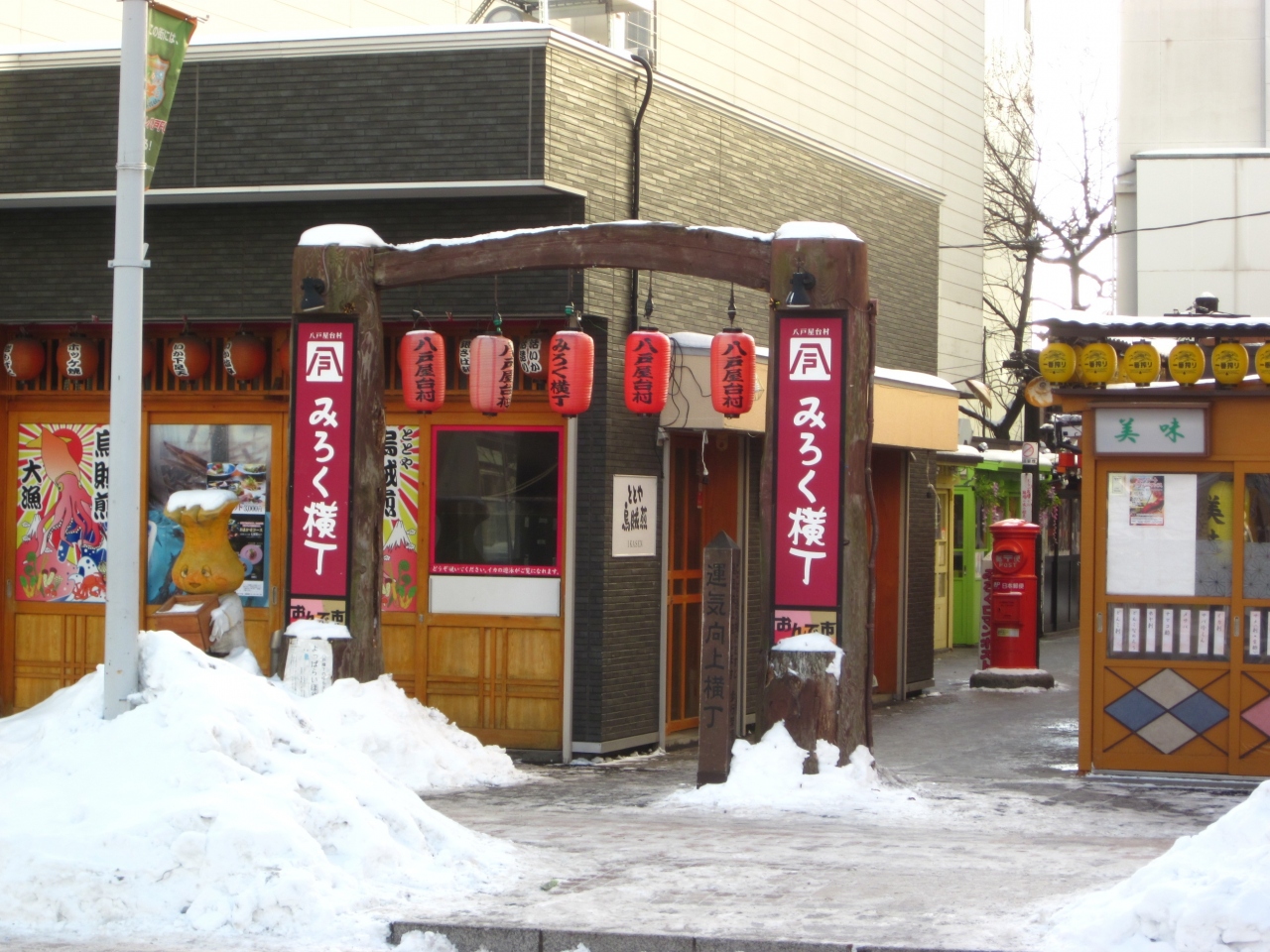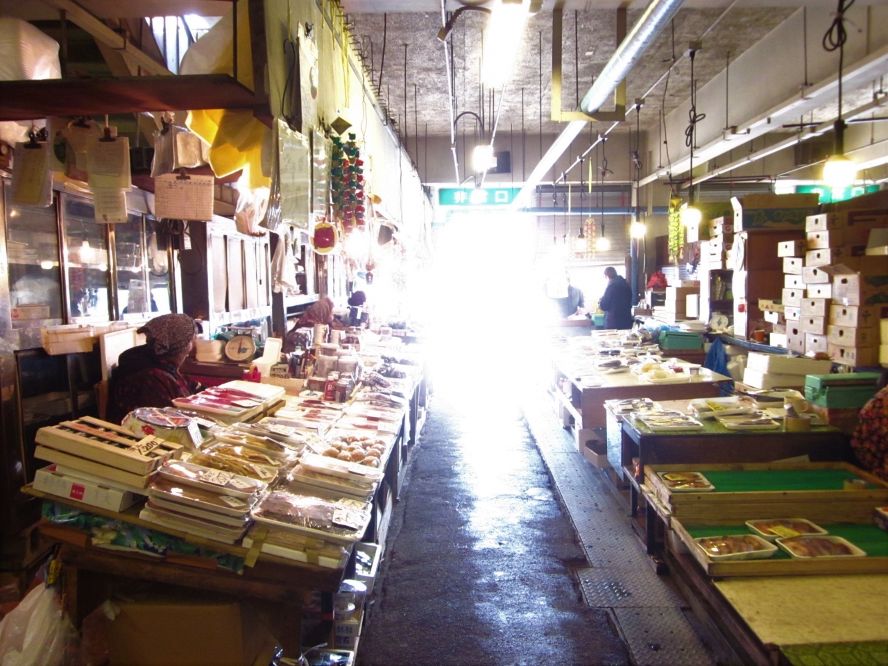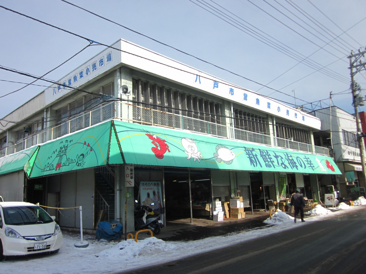 八戸市・陸奥湊駅が最寄り駅で、駅前には昔ながらの市場がいくつも並んで早朝から活気のあるとろこ~、市内のホテルに宿泊してわざわざ朝食をこの市場で食べに来る個人客やツアーもあるとかでそれなりに賑わっています。