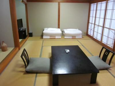 部屋は和室10畳なのでゆったり~、ですが館内はオール喫煙なので部屋も臭いが染み付いてました…(A/Cからも臭いが?~)。