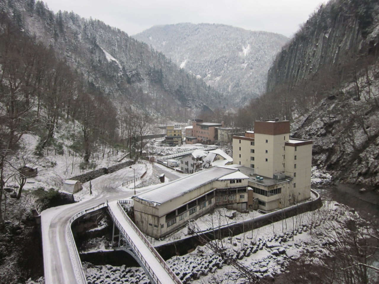 この日は一面雪で驚きました?、やはり渓谷なんで気温が旭川とは違って寒いのですね?。