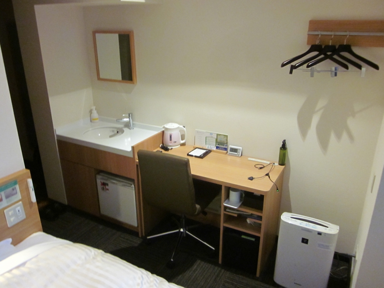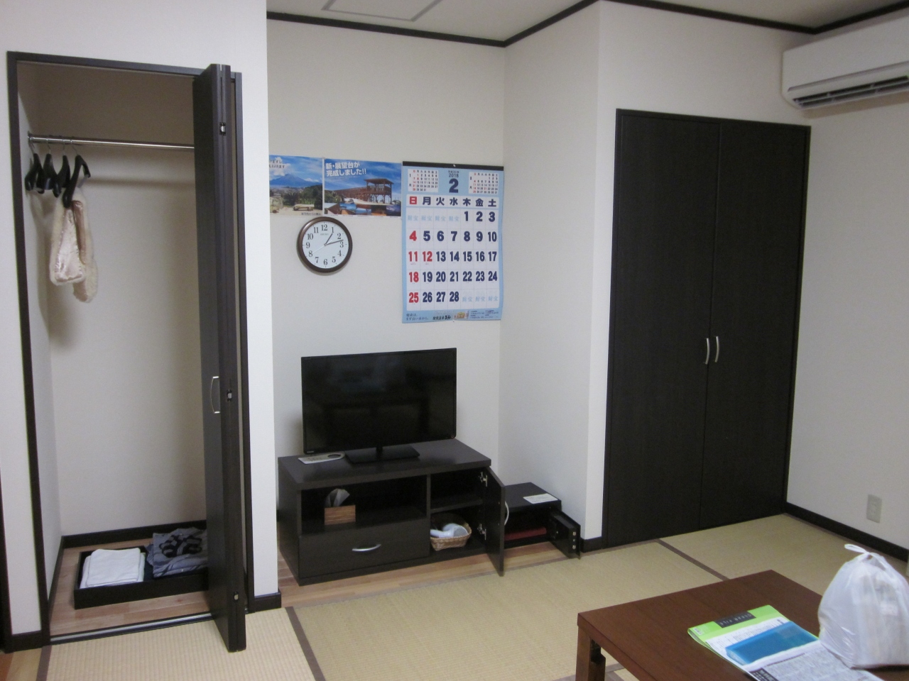 備品は一般的な電気ポット・ミニ冷蔵庫と液晶TV、大雪山系伏流水のポットが用意されてアメニテイーも揃ってます。