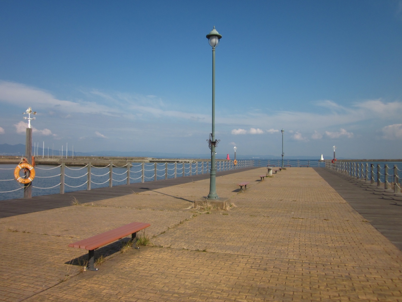 海へ真直ぐ伸びていくウッドデッキの突堤は特に気持ちが好いほど気分爽快に成りますね~。