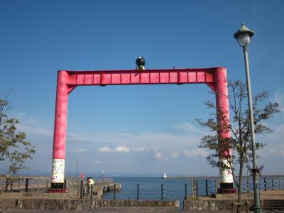 また、赤い巨大なゲート「マッテルモン」は一際目に付くここのシンボルで、門の上には待っている者をイメージしたキャラクターが座って海の彼方を見つめているんですね~。