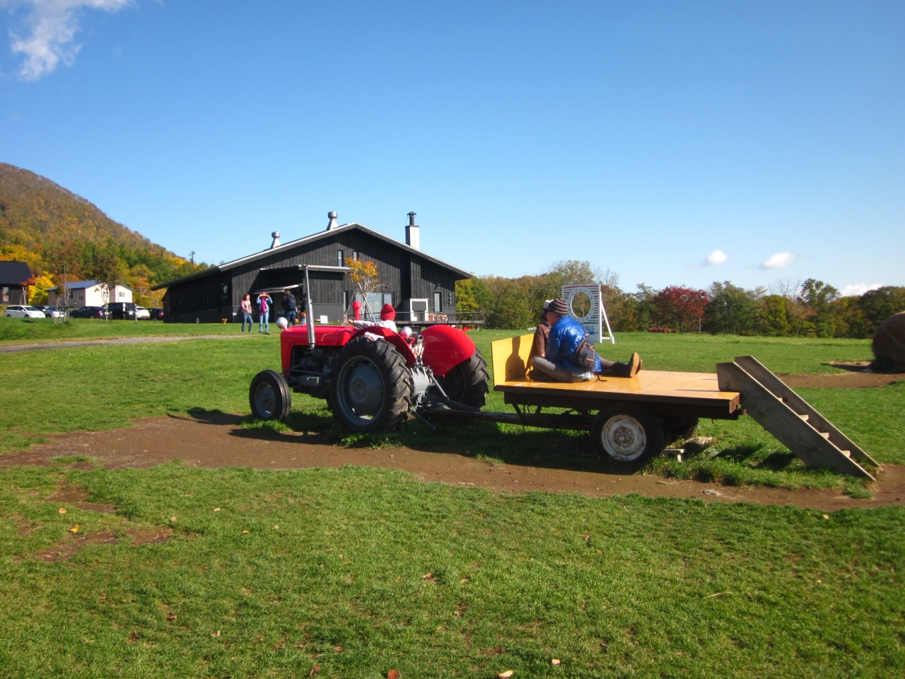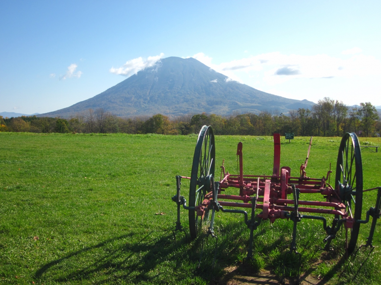正面には雄大な羊蹄山が望めます~、牧草ロールやトラクターなどをバックに記念撮影を撮影するのも好いですね。- 旅行時期