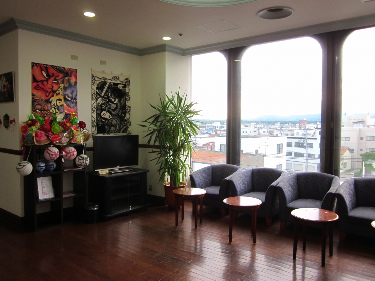 9時頃を回ると自然に皆さんん集まって来ては、酎ハイや酒を飲みながらカップ麺に駄菓子を食べながら過ごしてますね~、ビジネスホテルと言うよりはゲストハウスっぽいですね!。