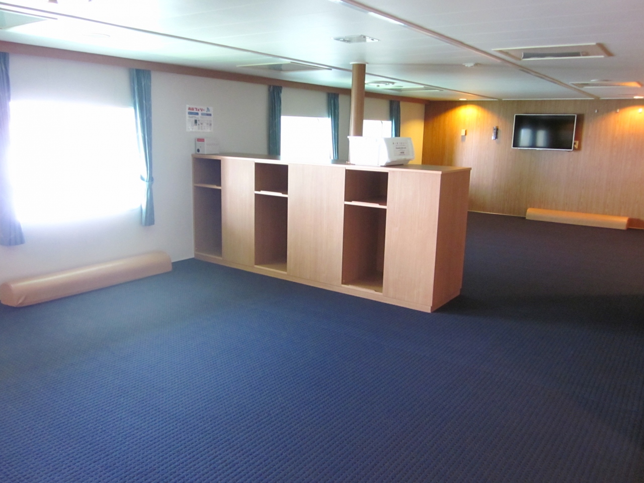 しかしながら今回利用しましたフェリー「はやぶさ」は2014年に就航した一番新しい船舶ゆえ総トン数も3000t弱の大型、今風に対応出来るバリアフリーや多目的トイレなどの設備を有する船内には驚きました!、以前では考えられないほどグレードアップしている設備です。