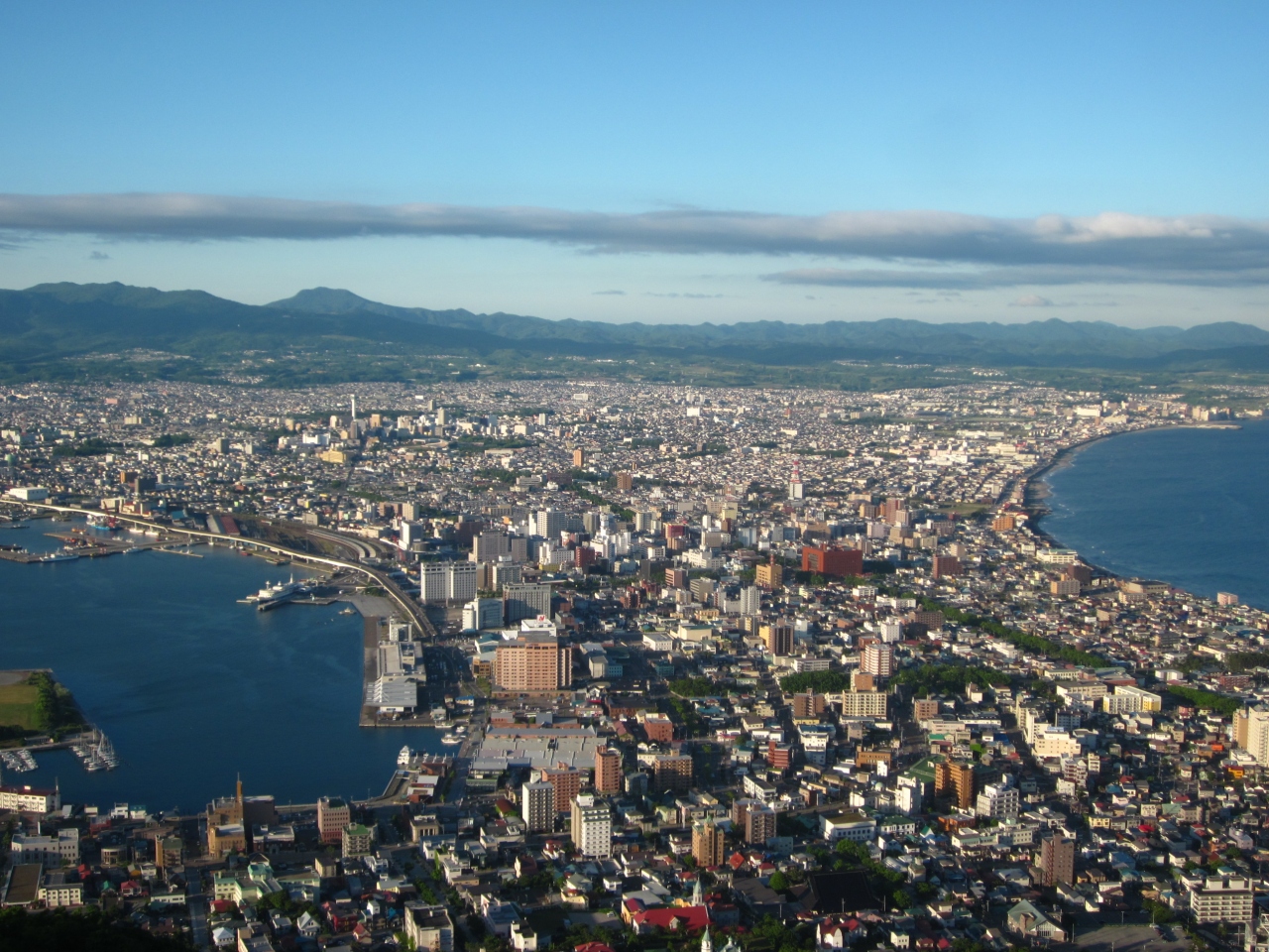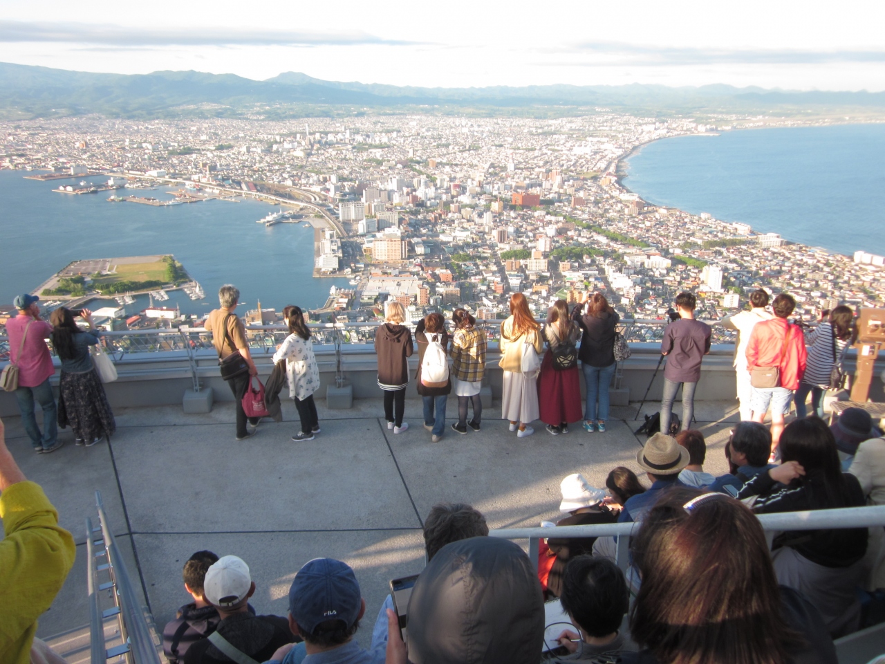 函館山・展望台からの眺望はいつ来ても期待通りで素晴らしい!、日中は観光客も少なくゆっくりと右は恵山・函館空港方面から市内を見渡して左は駒ヶ岳・木古内方面まで望める景観はダイナミックで心は開放的に成れますね~。