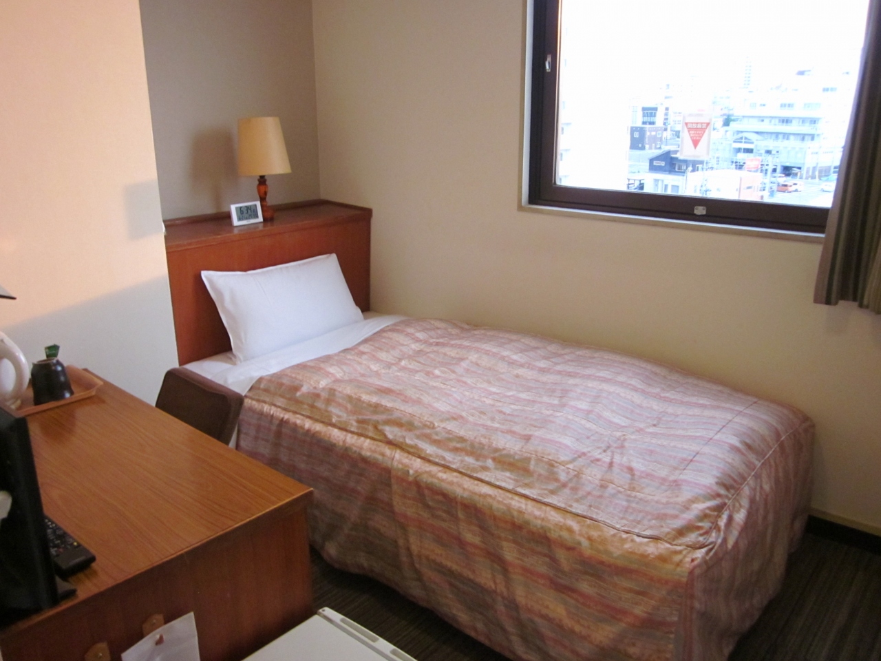 予約では「訳ありプラン?朝食付き」で申し込みましたが、空き部屋が有るとのことで普通のシングルへアップグレードして頂けました(ラッキー!)。