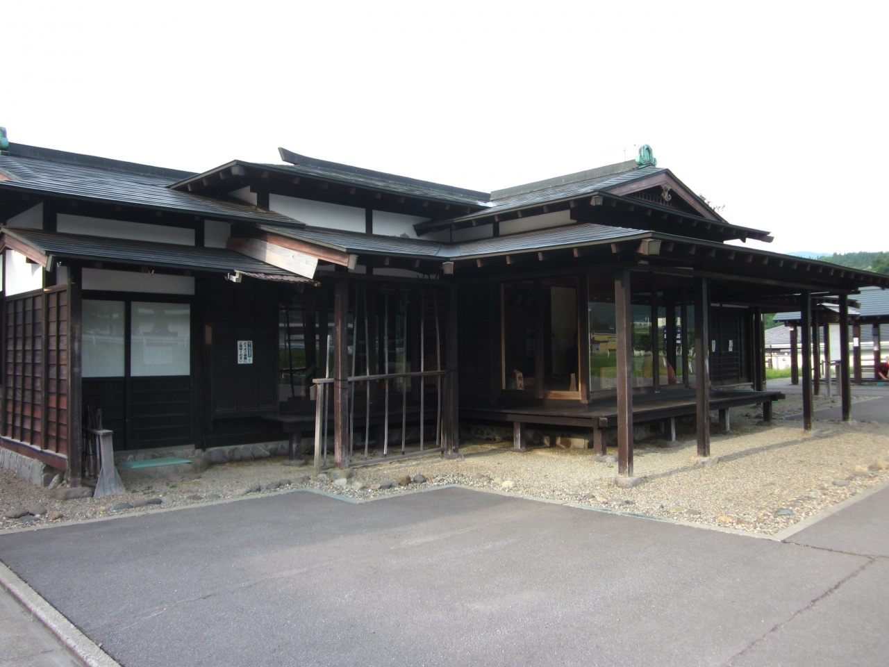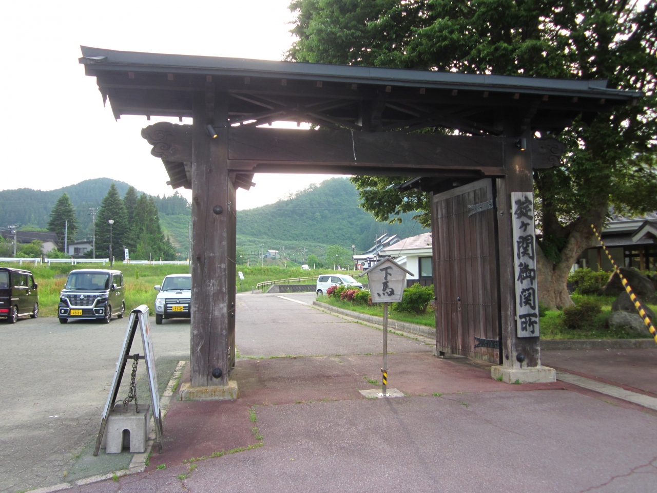 広~い駐車場から”碇ヶ関御関所”の門を抜けて緩やかな坂を行くと右に関所資料館が建ってます(本当は見学したかったのですが17:00までとのことで無理でした)。