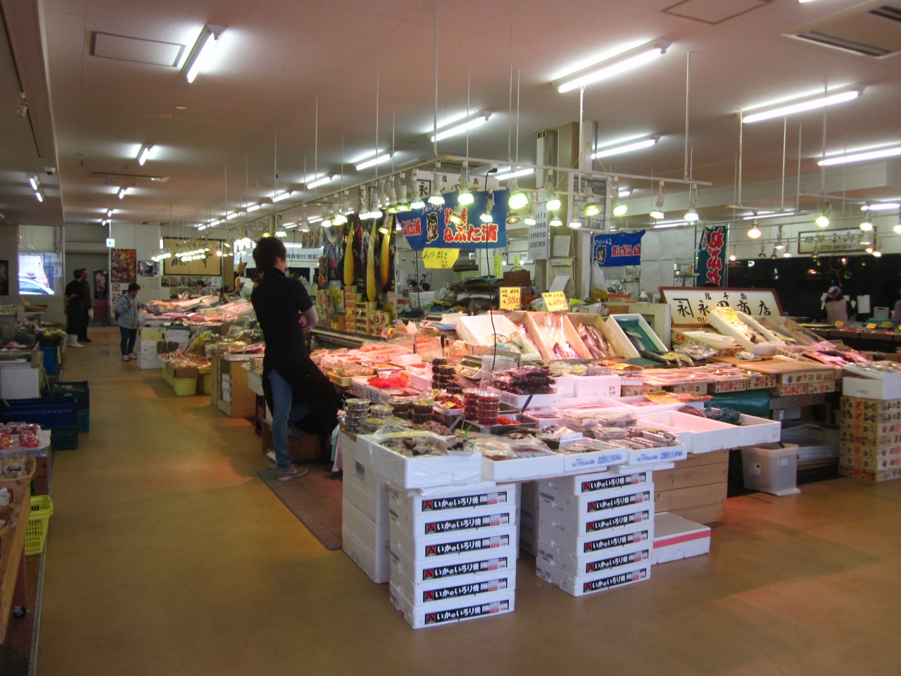 鮮魚・塩干・乾物・加工品・青果・惣菜・菓子・酒・包材に至るまで何でも揃うのでが、今は精肉・衣料が無くなったようですね。