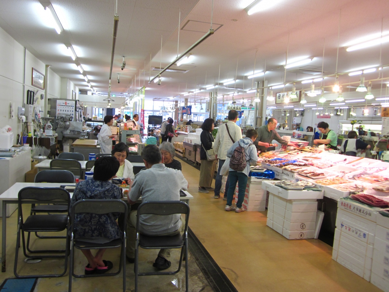 店内に入りと大勢の買い物客で溢れてますね!~、週末だからとも言えるのですが、これだけの人を見たのは青森に来て初めてです。