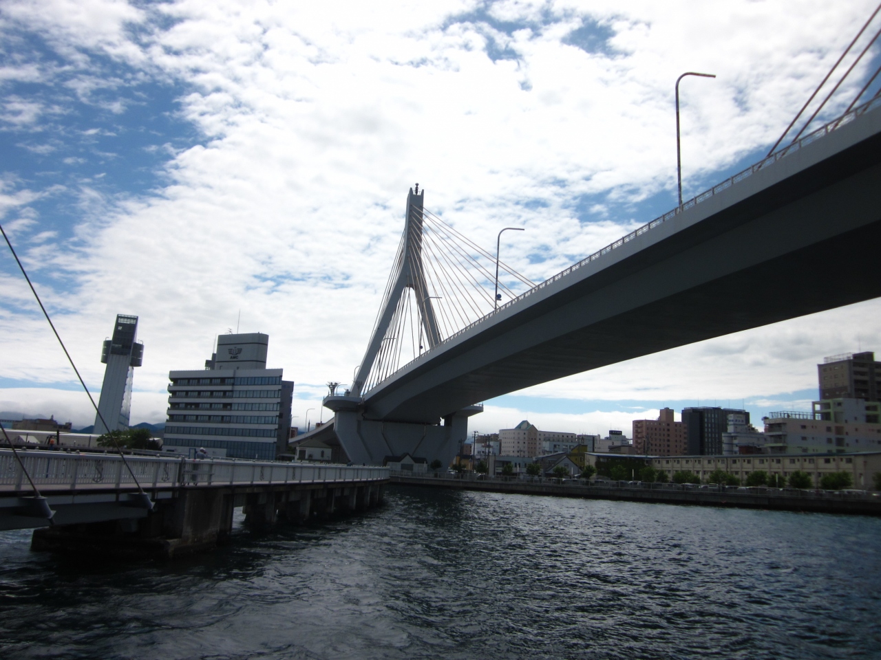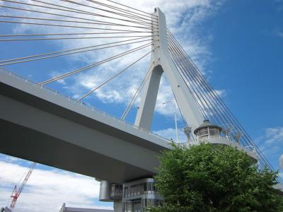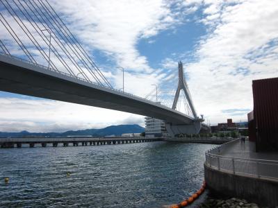 青い海公園の背後に聳え立つ巨大な三角形の施設が「青森県観光物産館アスパム」、名の如く観光施設で13階には展望室も在るラウンドマーク的な存在です。