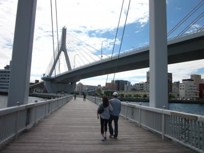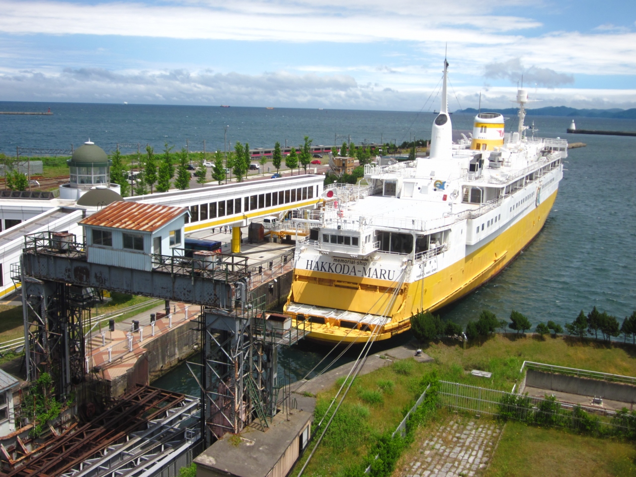 駅から直ぐの青森港に広がるウォーターフロントエリアの一画が「青い海公園」で、青函連絡船メモリアルシップ八甲田丸が繋留されている青函公園と、青森ラブリッジの遊歩道で結ばれているので判り易くて便利です~。