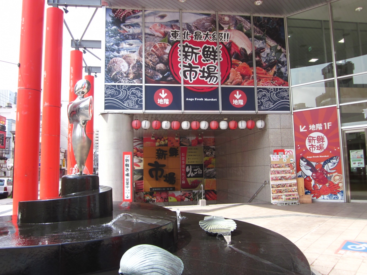 駅から徒歩で5分足らずで行ける近くて便利な市場「新鮮市場」はアウガ地下1階に入ってます。
