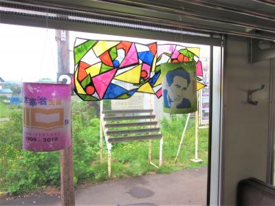 車内はほぼ満席状態でその大半が観光客ばかり~、車内では”太宰治生誕110年”キャンペーンのPOPが飾られ、トレイン・アテンダントによる乗車案内や観光案内に車内販売まであるのには少々驚きました…。