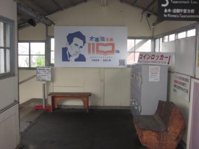 約25分で中間の金木駅に着きます~、ここは太宰治の生家”斜陽館”が在ることで有名なところ。また、唯一上下線の列車交換が出来る駅なのでここで乗り換えをし五所川原へ戻ります。
