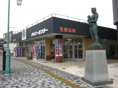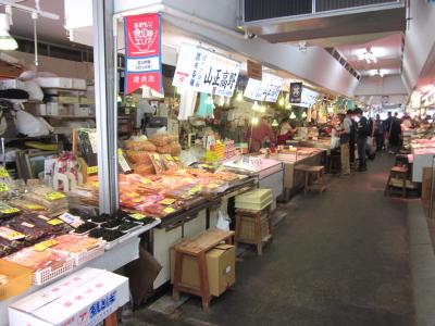 以前は”駅前市場”と言って、戦後の闇市の雰囲気を残す活気のある繁盛していた市場だったんですが…、今回数十年ぶりに行ってみると移転したせいもあって、場内に客がいないのには驚きました?…。