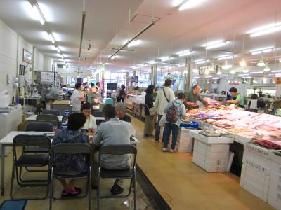 鮮度の好い魚介を見ていると丸ごと買って捌いて料理して、地酒で一杯出来れば最高なんだけど…、旅の身はそれが出来ないのが辛いね?~、だからせめてお刺身パックでも買って飲食スペースでいただくのが一番かも知れません。