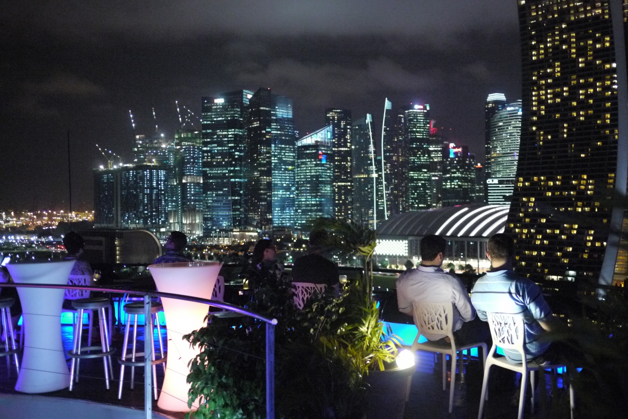 スーパーツリーグローブの屋上にあるルーフトップバーからの夜景を見ながらのワインは最高です!