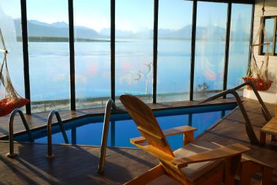 部屋の窓から、みずうみ越しに、アンデス山脈の美しい景色が眺められます。天気が良いと、遠くにパイネの山脈も見えます。広い部屋を予約しました。バスタブも大きく、ユッタリ疲れが取れました。最上階には、ジャグジーや、サウナもありリゾート気分になります。場所もダウンタウンにあり、近くには(30メートル)大変美味しいLENGAレストランがあります。(レストラン詳細は本文にあります)