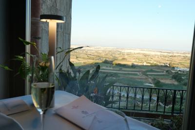 部屋からマルタ島全体が見張らせる素晴らしい立地にある五つ星ホテル。しかも、ミシュラン星付きのレストランもあり、品目は言葉では言い表せないほど手の込んだ手間をかけたおいしい料理ばかりである。イムディーナは、静寂の街と言われる街であるが、夜は貸し切りになったようなくらい、本物の静寂が楽しめる。そのためにもぜひ城塞内部のこのホテルに泊まってほしい。、