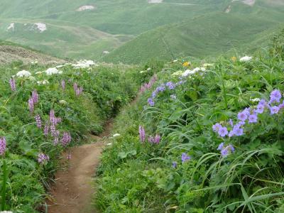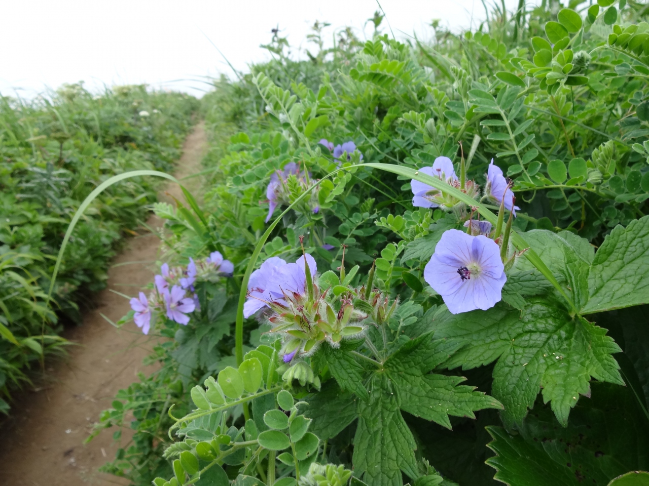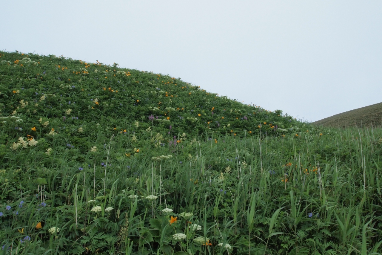 景色や花を楽しむのがメインなら、香深井から歩かなくてもよいコースだと思いました(元地側から入ってウスユキソウでUターン)。というのも、道中、花はそれほど種類も数もなかったので。そのうえ霧がかって天気がよくなかったのもあって、単調な道はおもしろくなかったです。。。