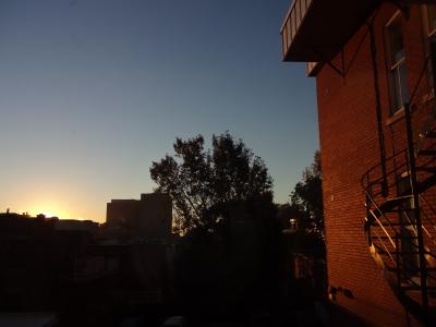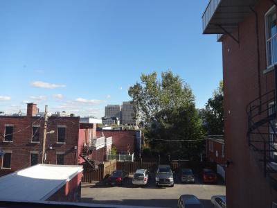 車の往来がけっこうあるSherbrooke通り沿いにあります。少し西へ行くと夜でも比較的にぎやかなSt-Denis通りがあり、食事やショッピングを楽しめます。Berri通りより東のあたりは、喧騒からは離れられ(Berri通りは夜は一人だと寂しいくらいかも)、ホテルでは静かに滞在できます。