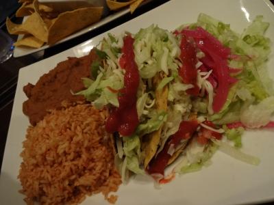チキンのタコス(牛か鶏か選べたと思います)とグワカモレをいただきました。どちらもボリューム満点です。これぞメキシカン、な味も満足。
