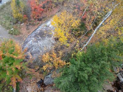 2回乗りましたが天候がイマイチだったので、写真ではそれほどキレイに残っていませんが、肉眼ではほんと、果てしなく遠くまで紅葉が続いているのが見えて、カナダの紅葉の広大さを実感できます。紅葉のピークも少し過ぎていたのが残念でしたが、それでもこの色彩は日本の紅葉では見たことのないもので、見ていて飽きませんでした。