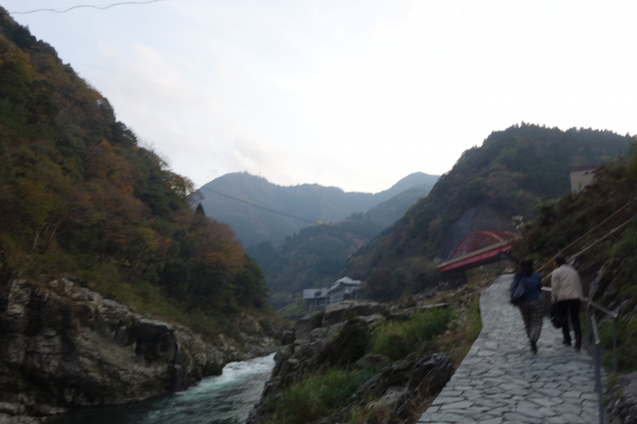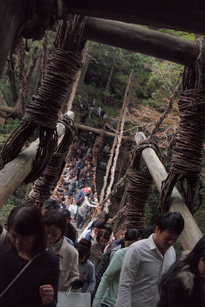 紅葉の時期の週末、渡り始めるまでに45分待ちました。ゴールデンウィークだと2時間待ちだったりすることもあるそうです。