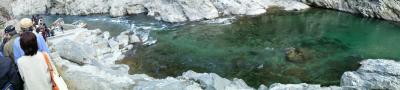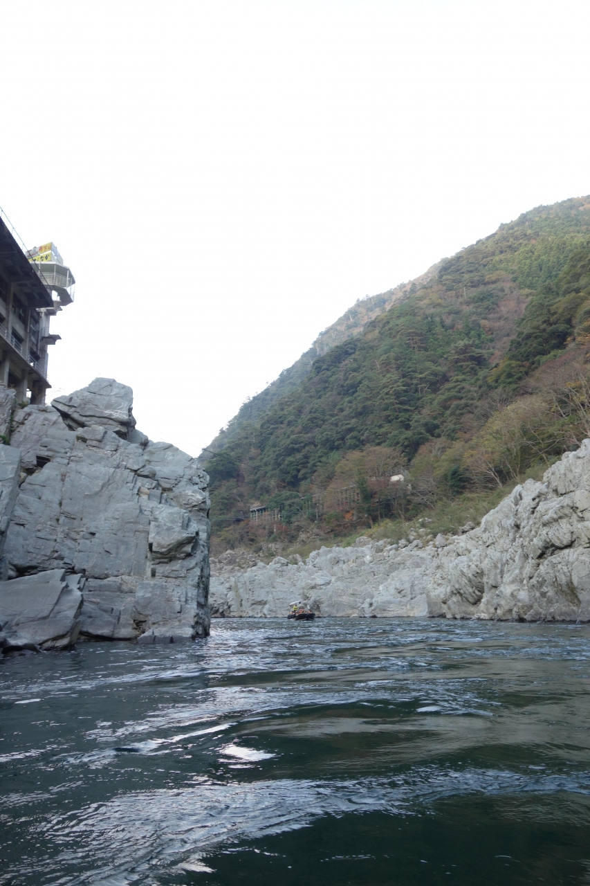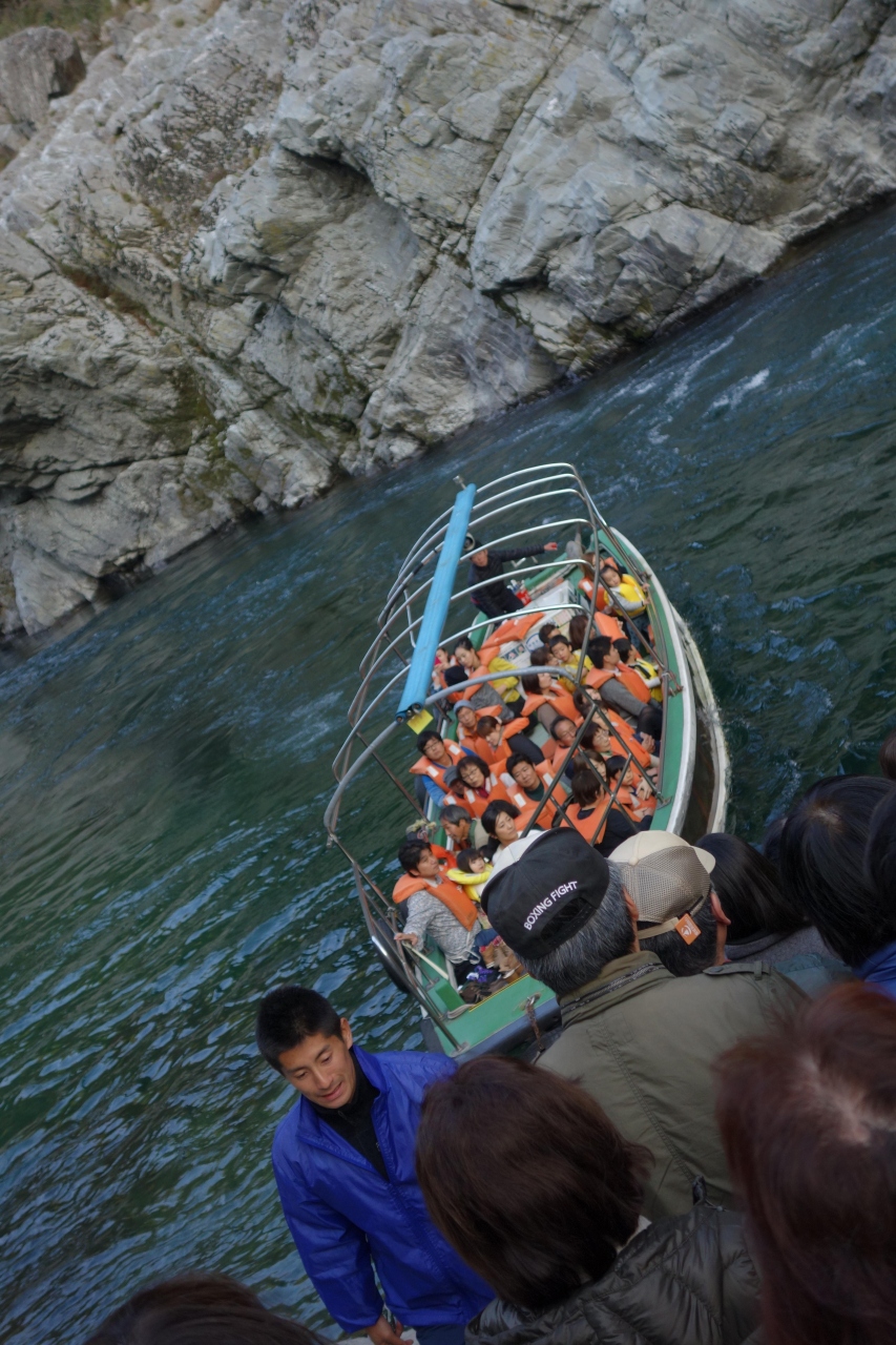 紅葉の時期の週末に訪れました。天気のよい週末だったので人出が多く、この遊覧船も乗り場からずらーっと長蛇の列で、待ち時間がかなりありました。