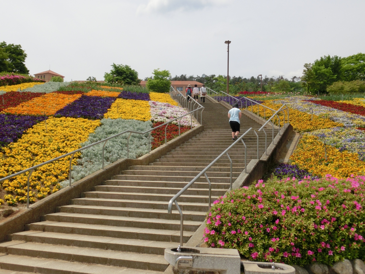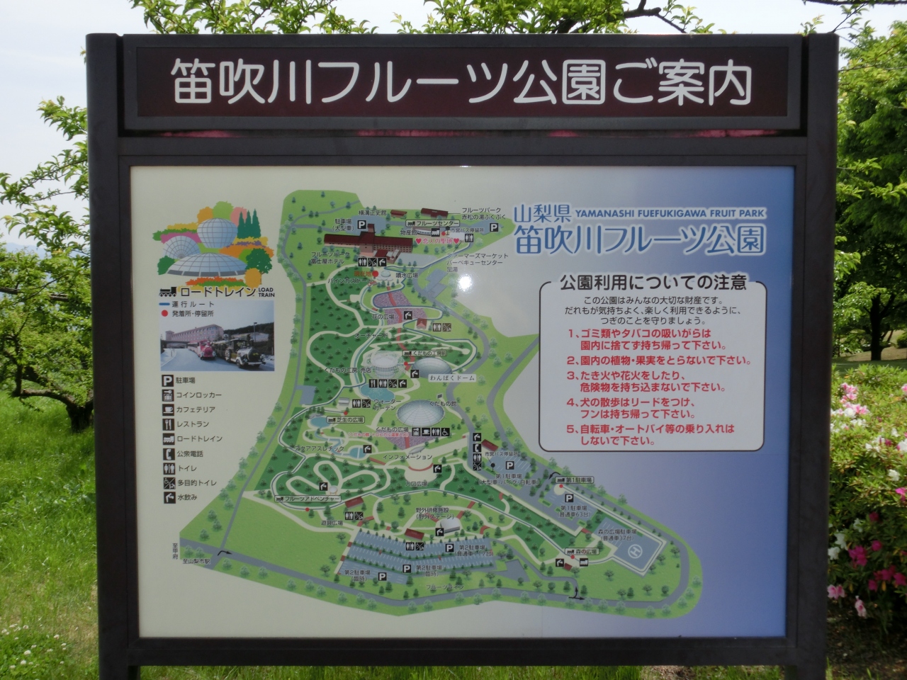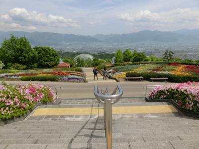 五月連休は出掛けないのが通例だが、家内が帰省中で、ドライブがてらに早朝に出発。第一目的は新倉山浅間公園(富士吉田市)からの富士山眺望でしたが、肝心の富士山が半分以上雲に隠れ残念でした。早々にそこを離れて第二目的の笛吹川フルーツ公園(山梨市)に向かい、約1時間ほどで到着。