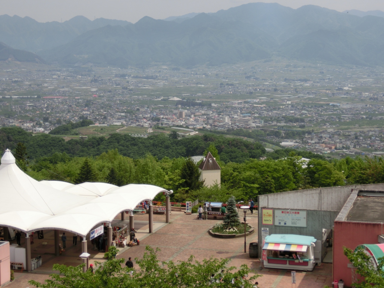 予想以上に良いスポットです。甲府盆地の東部一帯が一望でき、富士山方面の山々から富士山上部がかすかに見られ、季節のいい時には明瞭に見られると思われます。この公園からの展望は新日本三大夜景に指定されているようで、快晴時の夜景はすばらしいと想像できます。