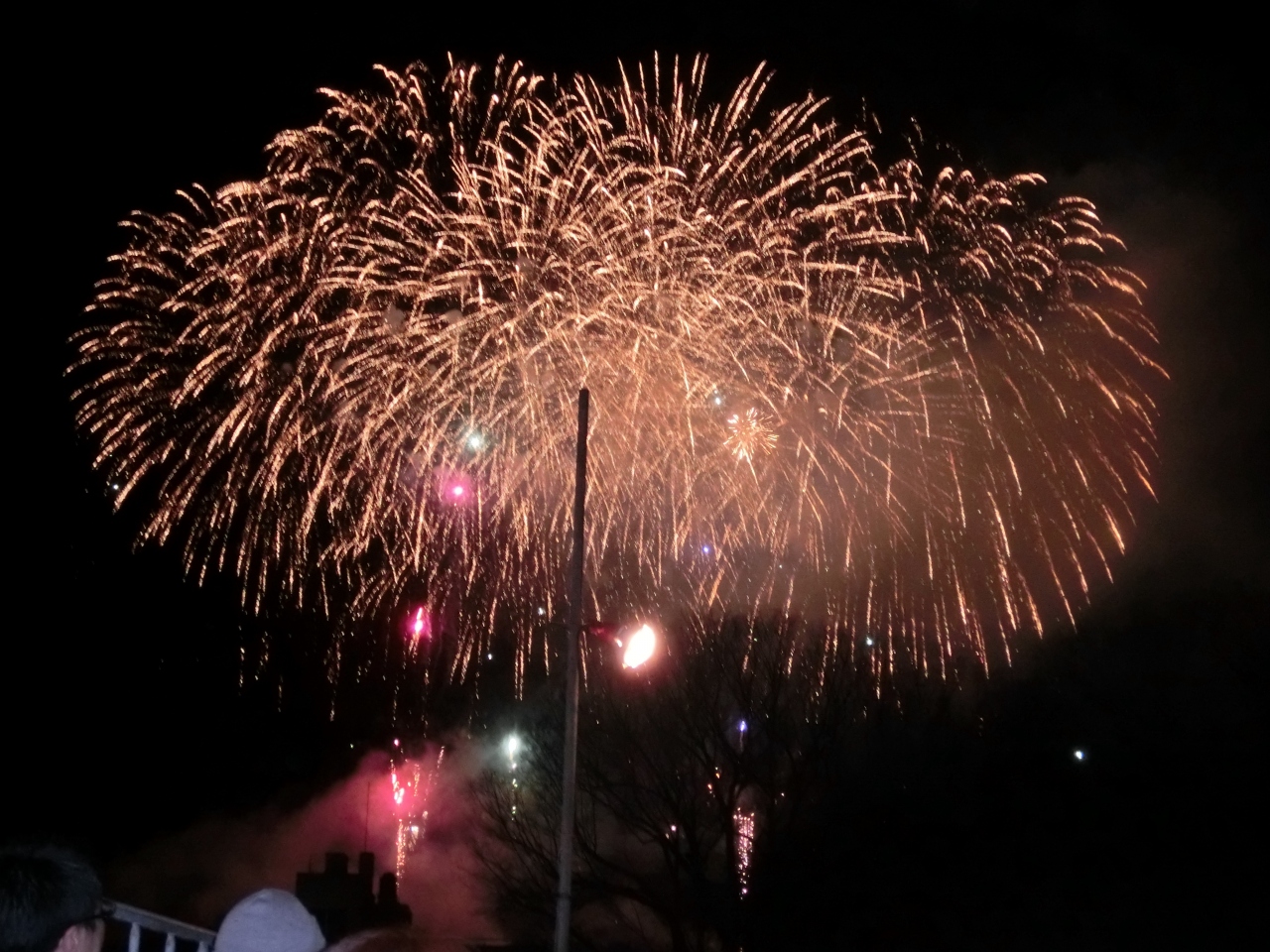 解散後、街中へ戻り、祭り行事観覧、屋台・笠鉾の曳き廻しを見たりなど。