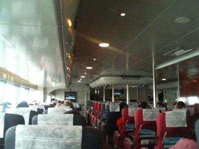 移動中はほとんど揺れもなく乗り心地はよかった。中ではコーヒーや飲食、免税品も売っています。